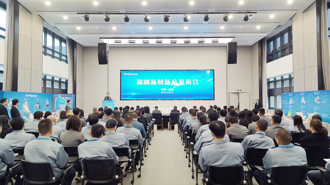On the afternoon of December 24, Furong New Materials' new product launch conference was held in the 201 lecture hall of Forop's headquarters office building. Leaders including Ye Xiangyang, deputy director of the Management Committee of Fuqing Rongqiao Economic Development Zone, Lin Yuanzhi, dean of the School of Materials and Packaging Engineering of Fujian Technical Normal University, Fang Hui, director of the Research Department of the School of Materials Science and Engineering of Fujian University of Technology, and other experts, as well as Mao Jianquan, co-president of Forop New Materials Co., Ltd. and other company leaders attended and witnessed this significant moment.